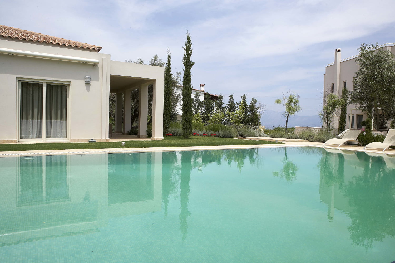 Villa Regina includes its own covered and shaded private veranda with its own table and chairs, which offers swimming pool views. You can also enjoy views of the impressive Mediterranean garden and the stunning views over the sea of the Evian Gulf and the mountain ranges of Evia from the garden & pool area, as they radiate an air of captivating romanticism, and are bound to charm and rejuvenate you.