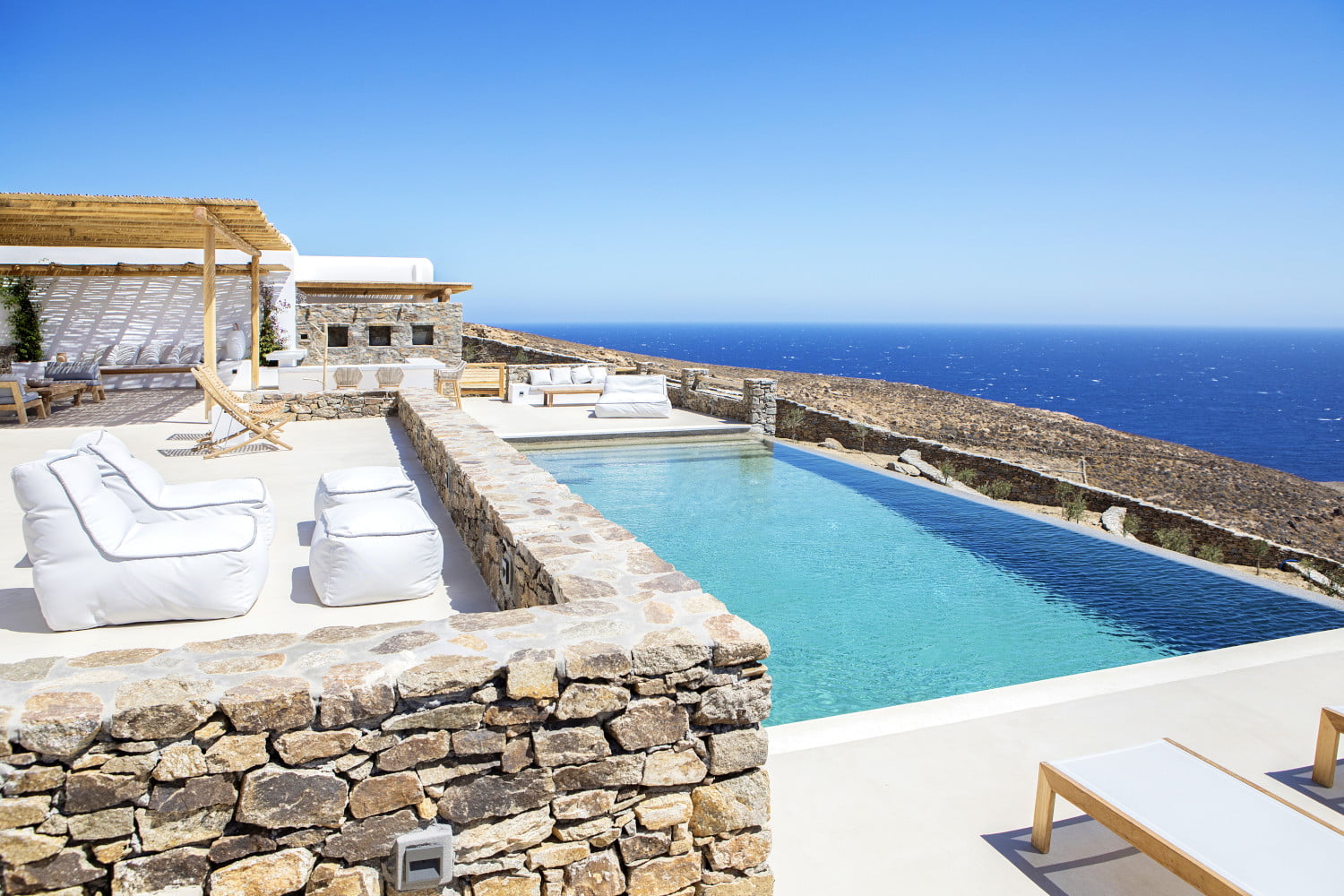 Guests will enjoy complete and exclusive access to all areas of this secluded Mykonos villa, its private terraces, outdoor spaces and infinity pool, during their stay.